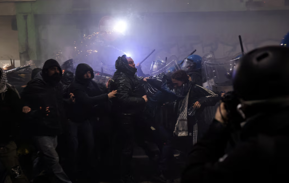 В Италии прошли протесты на фоне зимних Олимпийских игр в Милане. Полиция применила водометы против протестующих, бросавших дымовые шашки
