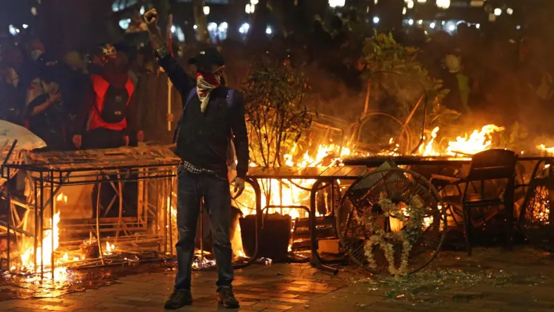 Демонстранты начали возводить баррикады, затем на некоторых из них возник пожар.