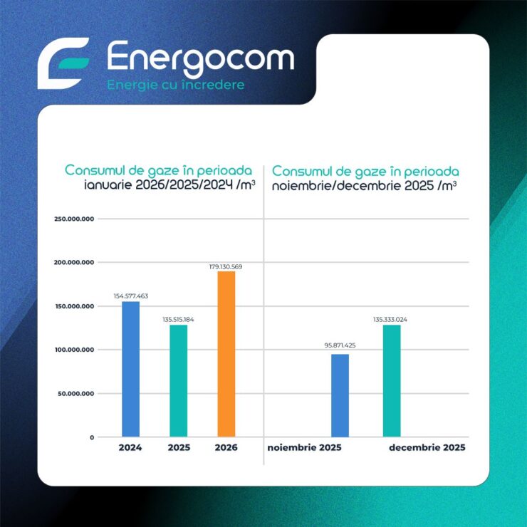 Из этих объемов Energocom поставил в январе более 179 миллионов м³ природного газа, что почти на 45 миллионов м³ больше, чем в декабре 2025 года, когда потребление составило около 135,3 миллионов м³.