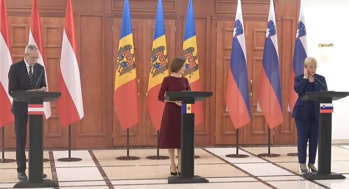 ВИДЕО/Совместная пресс-конференция Майи Санду с президентами Австрии и Словении: «Австрия полностью поддерживает усилия Молдовы по вступлению в ЕС»