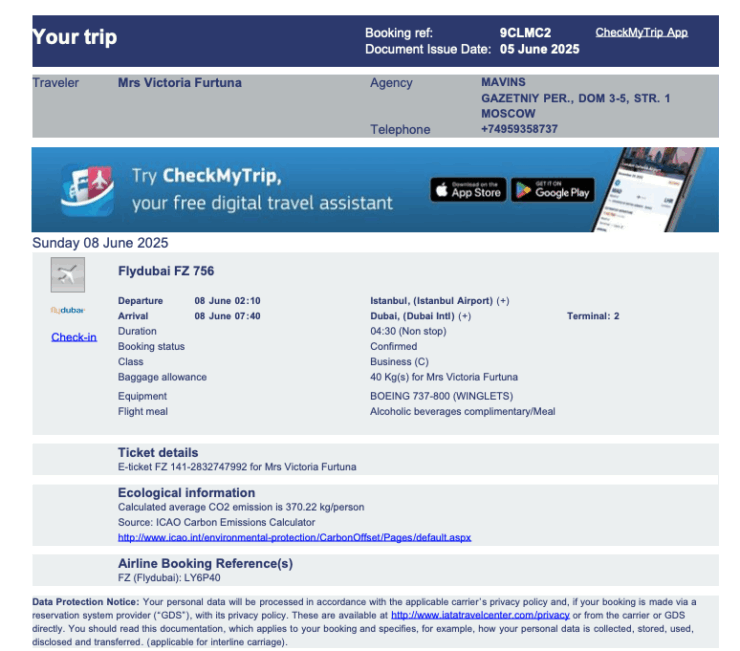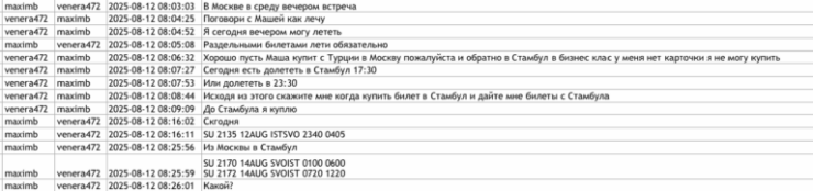 Согласно опубликованным данным, Фуртунэ несколько раз летала в Россию и Арабские Эмираты за счет российских средств. Переписка показывает, что она просила купить билеты.
