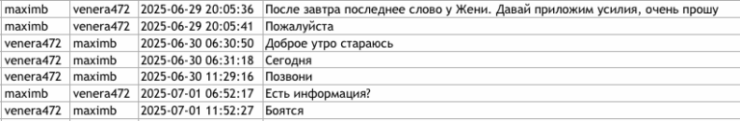 Несколько дней спустя, 16 июня 2025 года, Фуртунэ написала Антону, что посол (Российской Федерации в Молдове, прим. ред.) интересуется, почему она не летит, имея в виду Петербургский экономический форум, который должен был начаться через несколько дней. Бывший прокурор добавила, что тот же вопрос задали и другие.