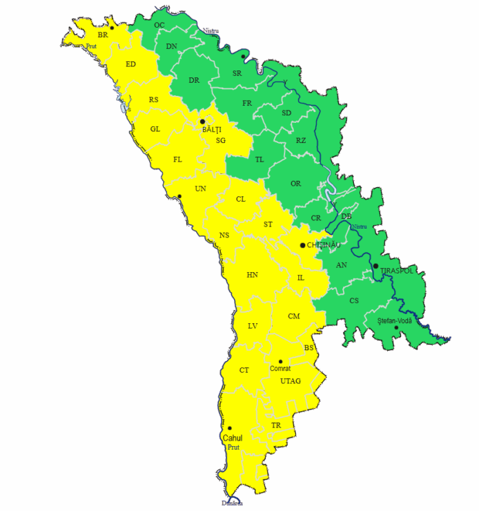Pe parcursul zilei de sâmbătă, 4 octombrie, în intervalul orelor 00:00 – 17:00, în raioanele din vestul țării se așteaptă ploi puternice. Serviciul Hidrometeorologic de Stat (SHS) a emis în acest sens un cod galben.