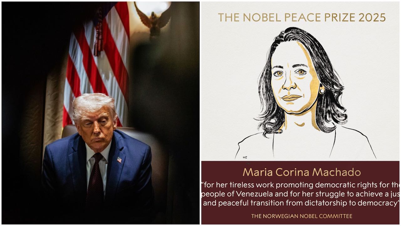 Comitetul Nobel norvegian a anunțat vineri, 10 octombrie, că laureatul din 2025 al Premiului Nobel pentru Pace este Maria Corina Machado „pentru munca ei neobosită de promovare a drepturilor democratice ale poporului venezuelean și pentru lupta ei de a obține o tranziție justă și pașnică de la dictatură la democrație”.