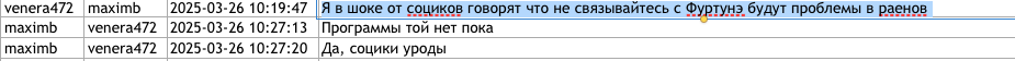 „La Forumul din Piter tu nu trebuie să pleci”, i-a transmis utilizatorul maximb (Anton Tregub), fără a primi răspuns din partea Victoriei Furtună.