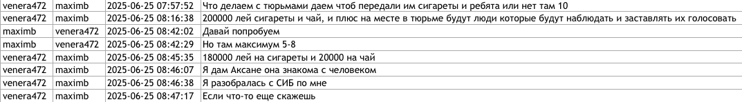 Corespondența atribuită Victoriei Furtună și curatorului Anton Tregub dezvăluie că Victoria Furtună ar fi avut conexiuni și cu oameni din sistemul penitenciar.