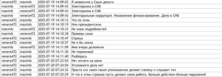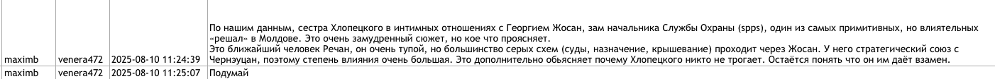 Un alt document scurs, intitulat venera472 Victoria Furtună-1, include o filă care ar reprezenta o discuție ce ar fi avut loc în perioada lunilor martie–august 2025, atribuită Victoriei Furtună, care utilizează pseudonimul „venera472”, și lui Anton Tregub, care utilizează pseudonimul „maximb”. Cel din urmă, potrivit Deschide.md, a fost unul dintre curatorii ruși ai Marinei Tauber în campania electorală pentru funcția de primar al municipiului Bălți din 2021 și a sprijinit logistic și strategic, în 2024, echipa de campanie a Partidului „Renaștere”, afiliat condamnatului Ilan Șor.