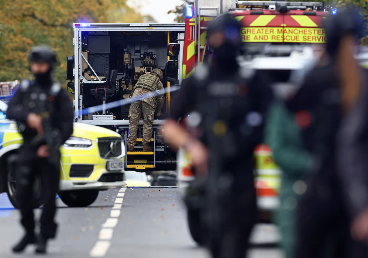 Ulterior, Poliția a declarat că se află la locul unui presupus atac cu înjunghiere într-o sinagogă din Crumpsall. Autoritățile din Manchester au anunțat că două persoane au murit în urma incidentului major.