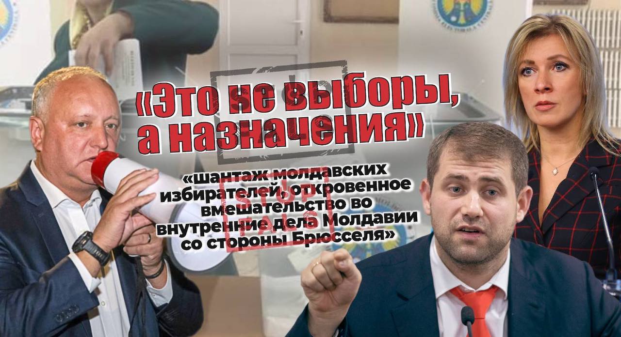 Tot pe 29 septembrie, într-un mesaj publicat pe pagina oficială a Ministerului de Externe al Rusiei și canalele aferente, Maria Zaharova a numit alegerile din R. Moldova „spectacol ieftin” și „campanie fără precedent de murdară”. „În republică însăși, campania electorală este evaluată drept una fără precedent de murdară, politizată, împovărată de utilizarea pe scară largă de către autorități a resurselor administrative” (în original: «В самой республике избирательную кампанию оценивают как беспрецедентно грязную, политизированную, отягощенную масштабным задействованием властями административного ресурса»). Reprezentanta Ministerului rus de Externe a lansat mai multe acuzații: „Acesta este un șantaj financiar flagrant al alegătorilor moldoveni și o interferență flagrantă în afacerile interne ale Moldovei din partea Bruxelles-ului, căruia îi place să propovăduiască democrația, dar în realitate operează cu metode totalitare” (în original: «Налицо грубый финансовый шантаж молдавских избирателей, откровенное вмешательство во внутренние дела Молдавии со стороны Брюсселя, который любит поучать других демократии, а на деле руководствуется тоталитарными методами»).