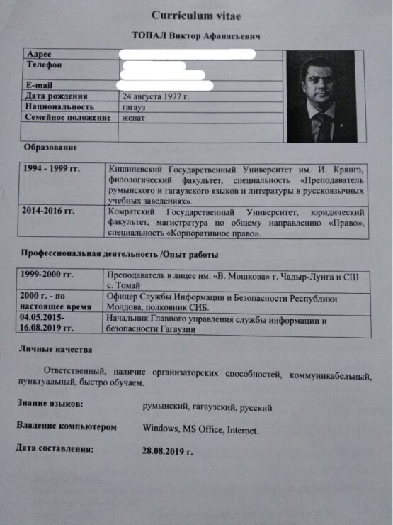 Victor Topal, fostul șef al Serviciului de Informații și Securitate (SIS) din Găgăuzia și asociat al fostei bașcane, Irina Vlah, a publicat un videoclip în care cere unui ofițer de poliție să vorbească în limba rusă. Cu toate acestea, CV-ul lui Topal indică faptul că nu numai că vorbește limba română, dar a și predat-o, scrie Nokta.
