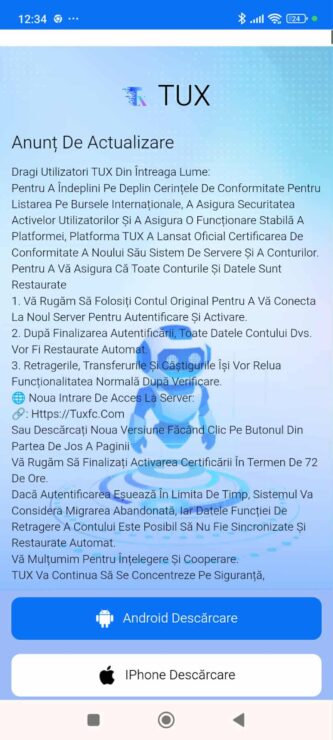 Cristina ne-a mai spus că vineri, 10 octombrie, a primit o notificare pe TUX că platforma se închide în 72 de ore și că toate informațiile vor dispărea, iar utilizatorii ar trebui să descarce o altă aplicație, să se înregistreze și mai trebuie să adauge 100 de dolari ca să poată accesa datele din noul cont.