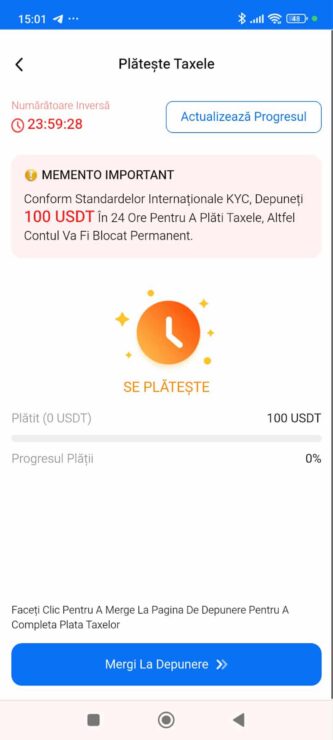 Cristina, cea de a doua persoană, spune că a „investit” suma minimă de 100 de dolari. Potrivit femeii, în fiecare zi trebuia să intre în aplicație pentru a „reinvesti”, iar veniturile creșteau zilnic cu 3-5%. Astfel, timp de trei luni, suma a ajuns la 400 de dolari, dar nu a putut să o retragă, pentru că aplicația îi cerea, din nou, 100 de dolari pentru a putea scoate banii din cont.