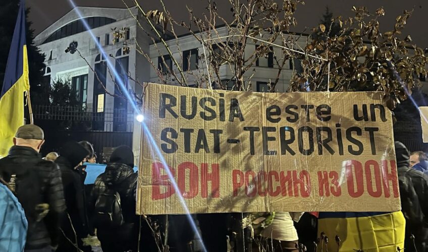 Peste o sută de persoane s-au adunat la un marș de solidaritate cu Ucraina, în ziua în care se marchează patru ani de la începutul războiului declanșat de Federația Rusă. Protestul a început la ora 18:00, de la statuia lui Ștefan cel Mare din Chișinău, și s-a îndreptat către clădirea Ambasadei Rusiei. Manifestanții au mers … Continuă lectura FOTO/ Protest la Ambasada Rusiei la Chișinău în ziua marcării a patru ani de război în Ucraina. Oamenii scandează: „Putin criminal” și „Slava ZSU”
