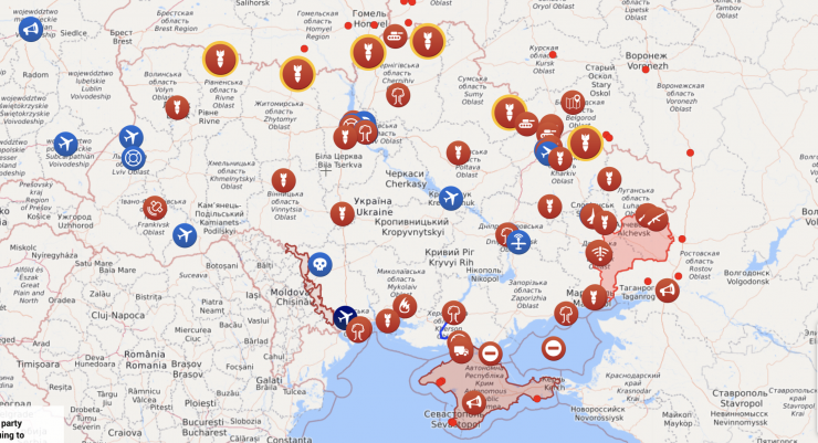 Livemapua.com, un serviciu care documentează atacurile conflictului ruso-ucrainean încă din 2014, a publicat o hartă cu locurile unde au fost raportate până la această oră atacuri.