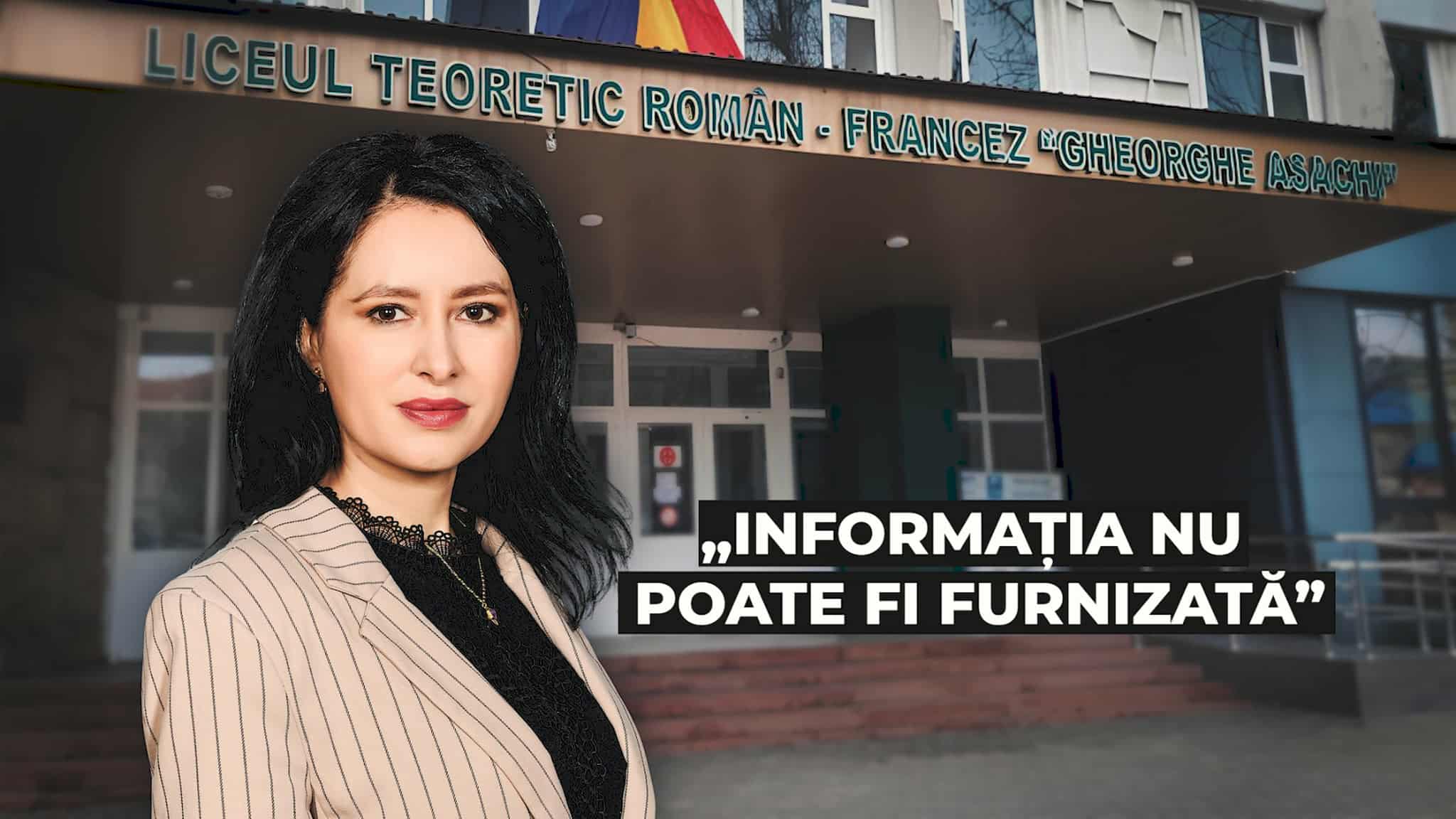 Opt zile – atât i-a luat administrației Liceului Teoretic „Gheorghe Asachi” din Chișinău, în persoana directoarei interimare Nona Chiriac, să (NU) răspundă la întrebări de interes public despre modul în care sunt cheltuiți banii instituției. „Cu părere de rău, informația nu poate fi furnizată”, se arată în răspunsul transmis către ZdG.