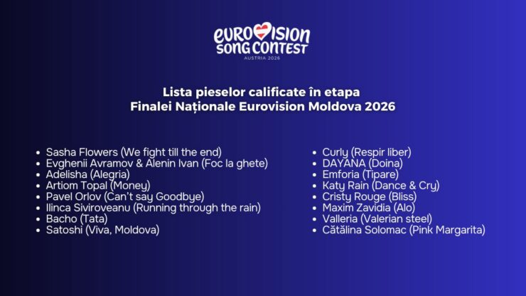 Lista concurenților calificați în Finala Națională Eurovision Moldova 2026: