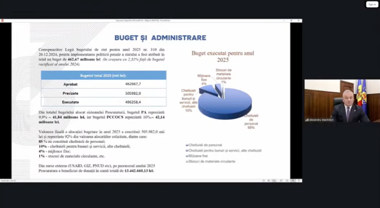 UPDATE 10:28 În 2025, din bugetul de stat a fost alocat sistemului Procuraturii 462.67 de milioane de lei, în creștere cu 2,31% față de bugetul alocat în 2024).