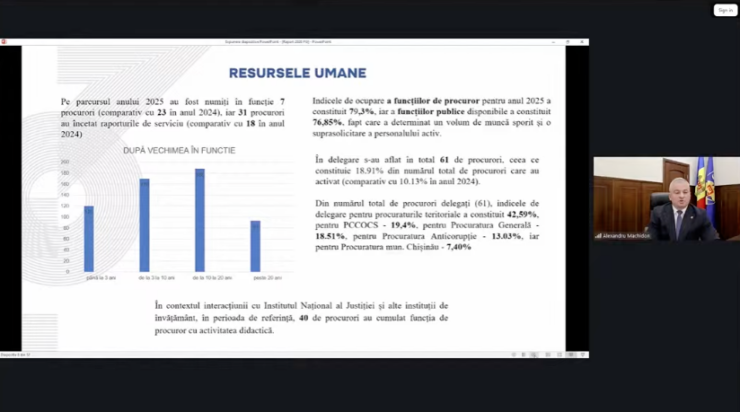 Totodată, pe parcursul anului 2025, au fost numiți în funcție șapte procurori (comparativ cu anului 2024, când au fost numiți 23), iar 31 de procurori au încetat raporturile de serviciu (în 2024 – 18 au încectat raporturile de serviciu).