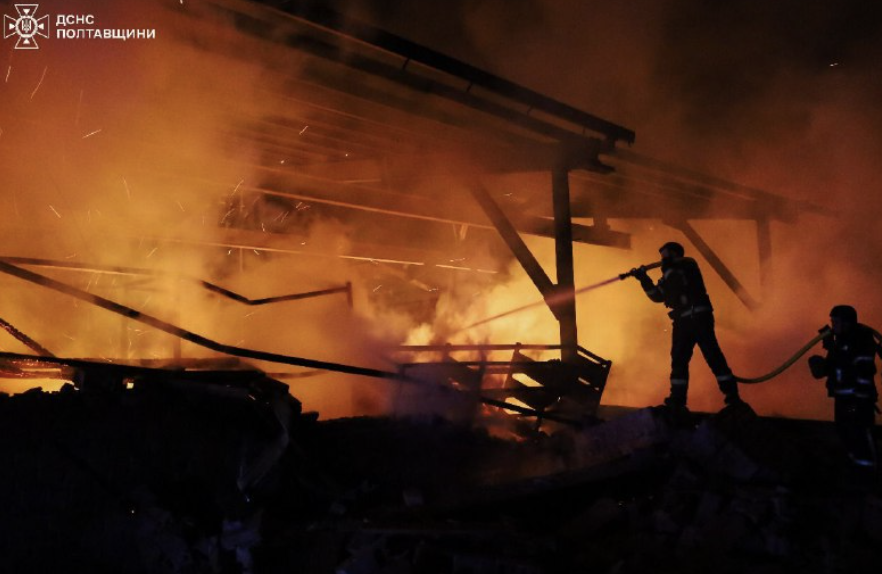 UPDATE 8:25 Poltava noaptea trecută a fost atacată de Rusia cu mai multe drone, anunță Serviciul penru Situații de Urgență.