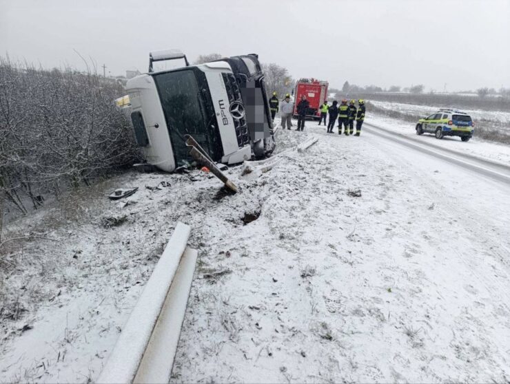 Mai multe mașini și camioane au derapat de pe carosabil din cauza condițiilor meteo. IGP îndeamnă șoferii să manifeste prudență la volan