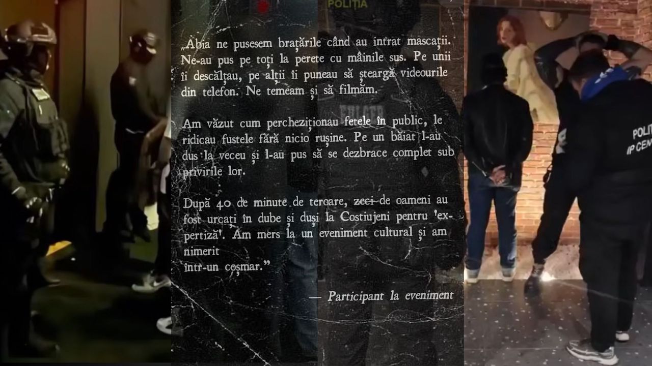 Prezentată ca o razie antidrog, intervenția oamenilor legii în noaptea de 14 februarie, într-un spațiu utilizat pentru organizarea petrecerilor de muzică electronică, a provocat umilire și stigmatizare, spun participanții la eveniment, pentru ZdG. Organizatorii evenimentului, care susțin că au avut pagube de circa 100 de mii de lei, au afirmat că doar trei din cele 19 persoane „conduse pentru expertiză narcologică” ar fi avut rezultate pozitive. De cealaltă parte, șeful Inspectoratului General al Poliției (IGP), Viorel Cernăuțeanu, a declarat pentru ZdG că oamenii legii au tratat intervenția asemănător cu cazurile de speluncă.