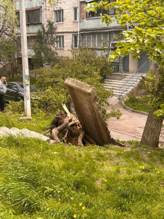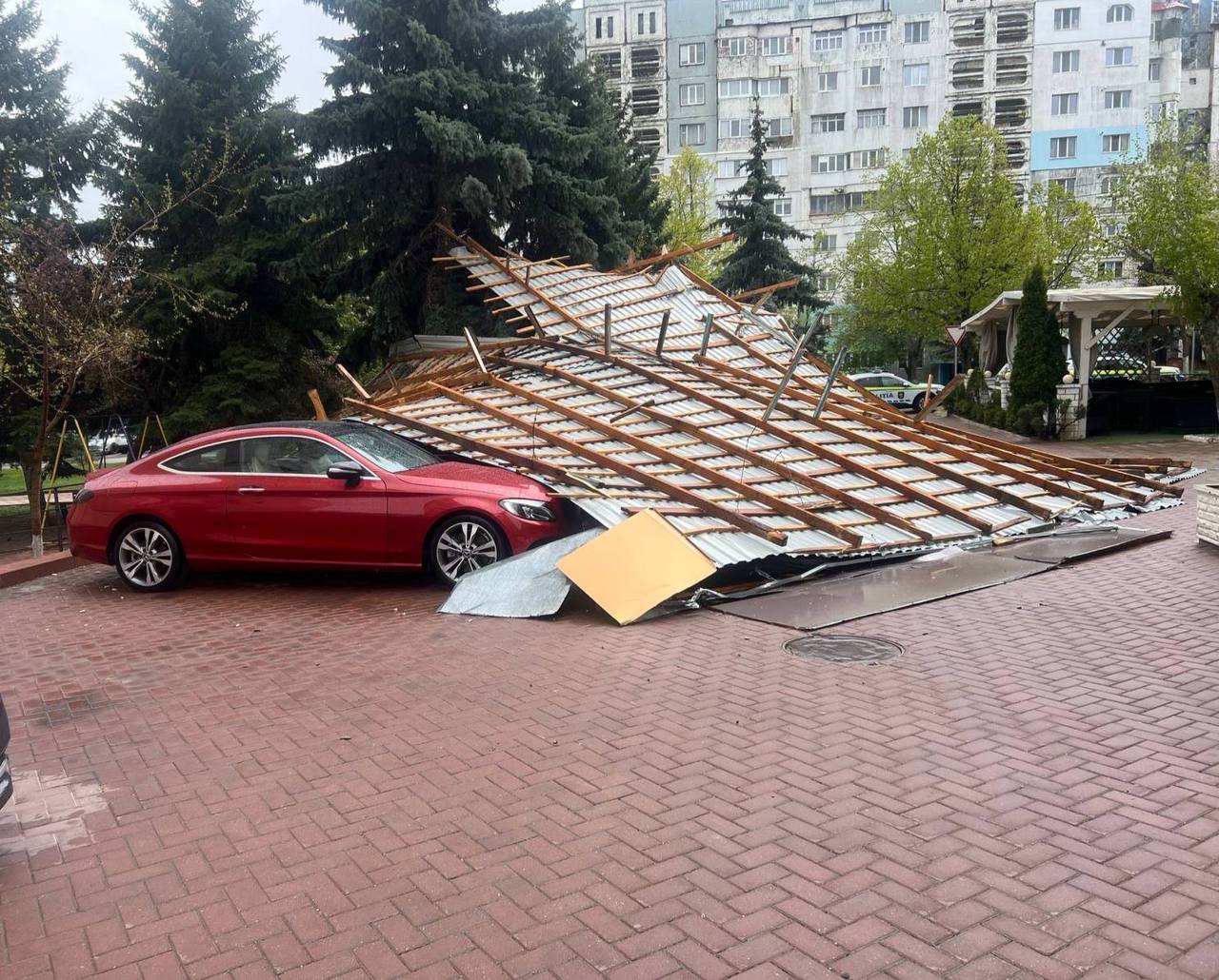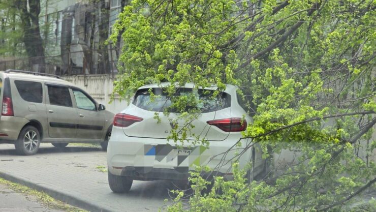 „Pe o stradă din oraș, în urma intensificării vântului, mai multe foi de ardezie de pe acoperișul unui bloc locativ au căzut peste automobilele din apropiere. În urma incidentului au fost înregistrate pagube materiale”, informează Poliția.