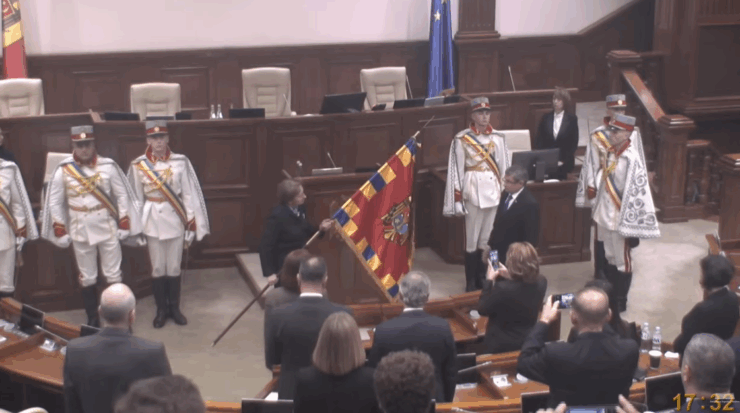 UPDATE 17:35 Lui Igor Grosu i-a fost înmânat Stindardului președintelui Parlamentului.