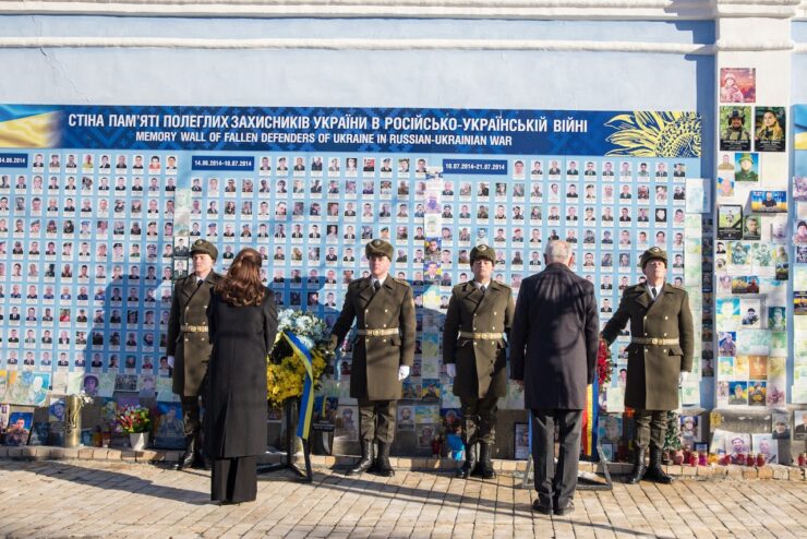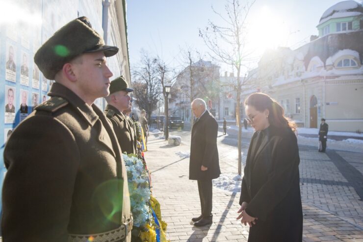 „Zidul Memoriei Apărătorilor Căzuți ai Ucrainei – memoria vie a sacrificiului și simbol al rezistenței și demnității poporului ucrainean. Am adus un omagiu, alături de prim-ministra Ucrainei, eroilor ucraineni care și-au dat viața pentru a-și apăra poporul, pentru libertate și independență.