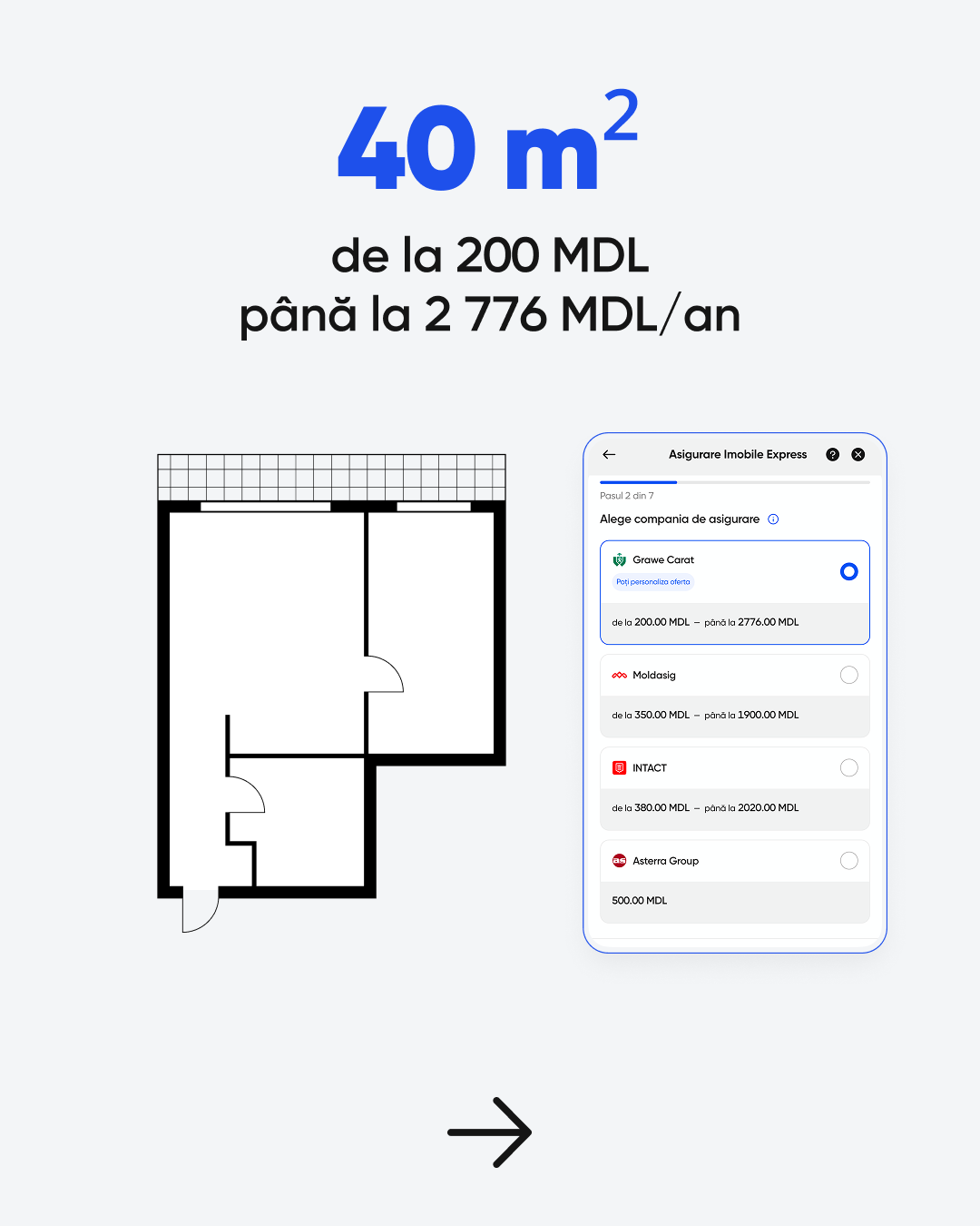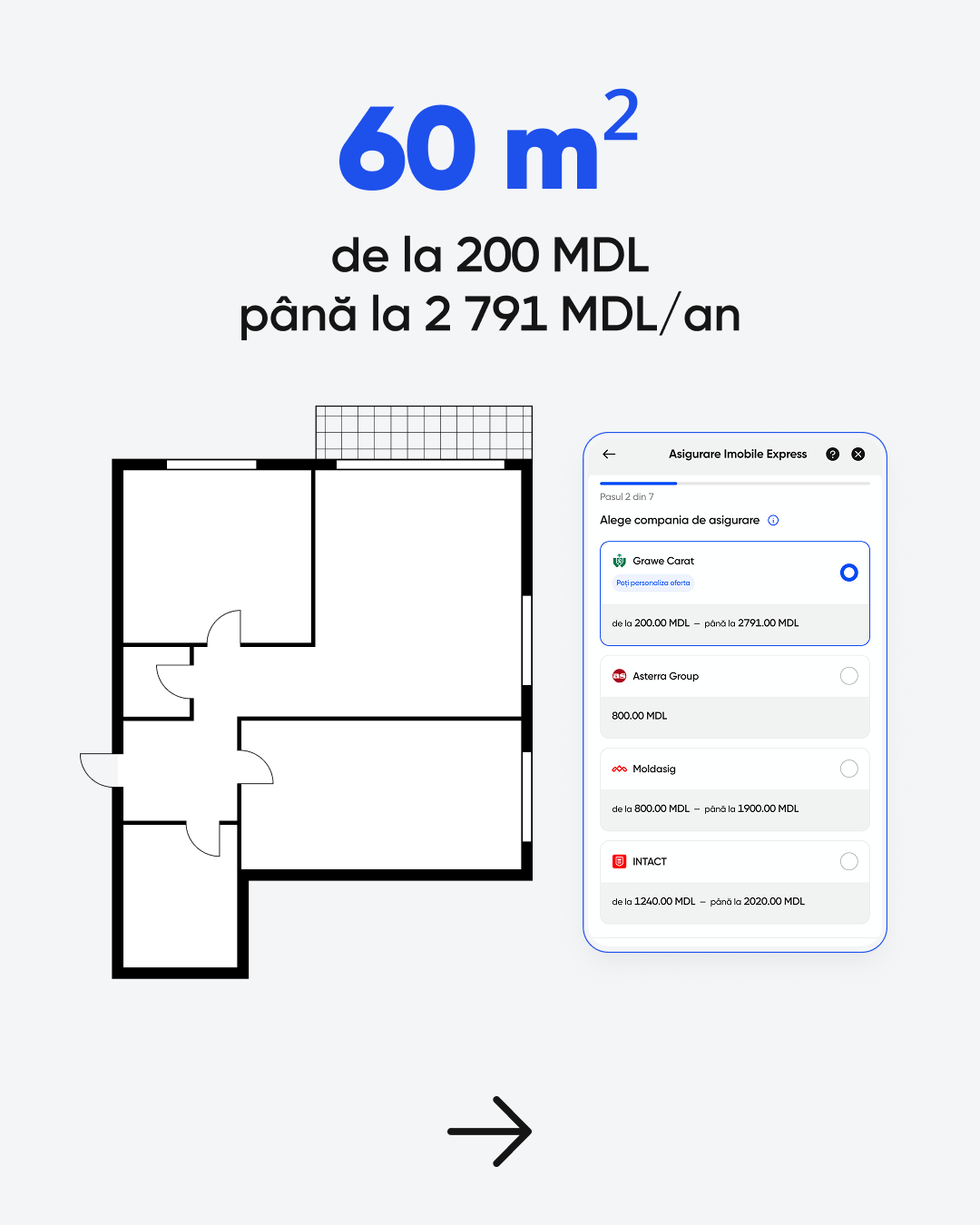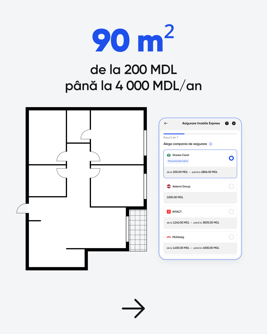 Cu Asigurarea Imobile Express, lucrurile stau complet diferit, 100% online, rapid și transparent. În doar câteva minute, poți compara mai multe oferte de la companiile din Moldova: Grawe Carat, Moldasig, Asterra Group și Intact, poți alege polița potrivită pentru tine și familia ta și poți încheia asigurarea direct din telefon, fără drumuri și hârtii. Astfel, locuința și bunurile din interior sunt protejate de incendii, inundații, furt sau alte evenimente neprevăzute, iar tu ai siguranța că, dacă apare o situație imprevizibilă, nu vei rămâne singur în fața cheltuielilor.