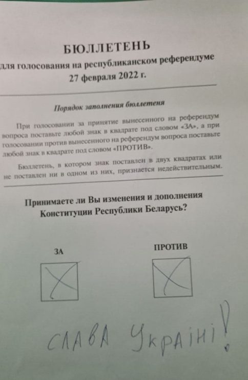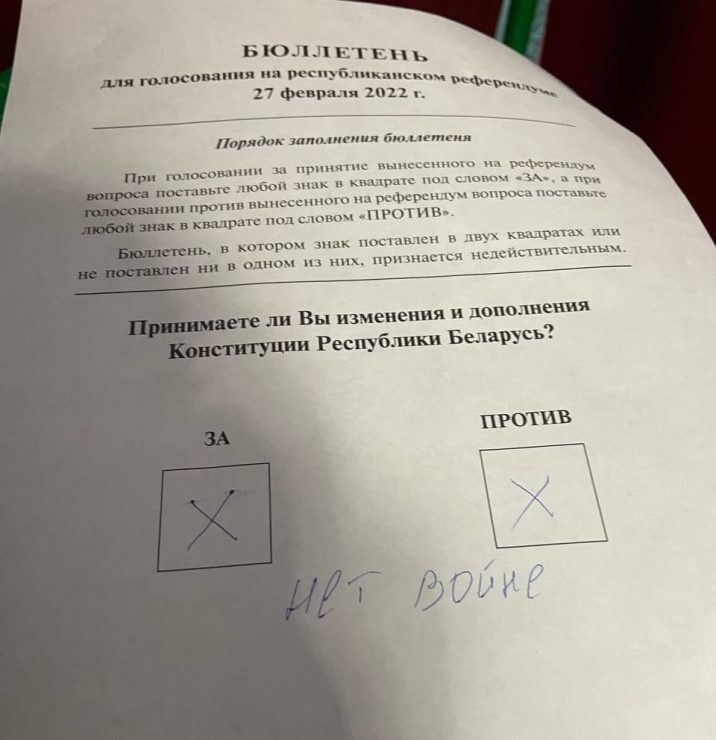 La referendumul constituțional care se desfășoară astăzi în Belarus, în aceste clipe, oamenii se adună în masă lângă secțiile de votare. Votanții scandează sloganuri anti-război.