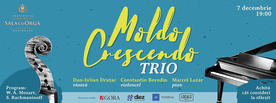 Pe data de 7 decembrie, începând cu ora 19:00, la Sala cu Orgă va avea loc concertul „Moldo Crescendo Trio” unde Dan-Iulian Druțac (vioară), Constantin Borodin (violoncel) și Marcel Lazăr (pian) vor interpreta trio-uri de W.A.Mozart și S.Rachmaninoff.