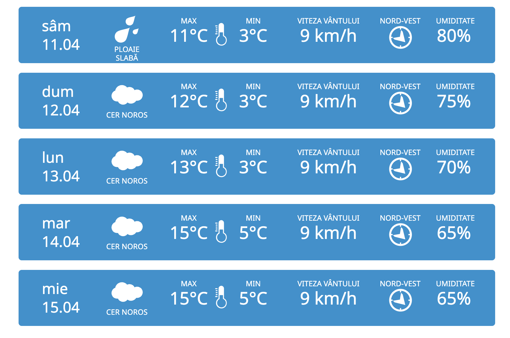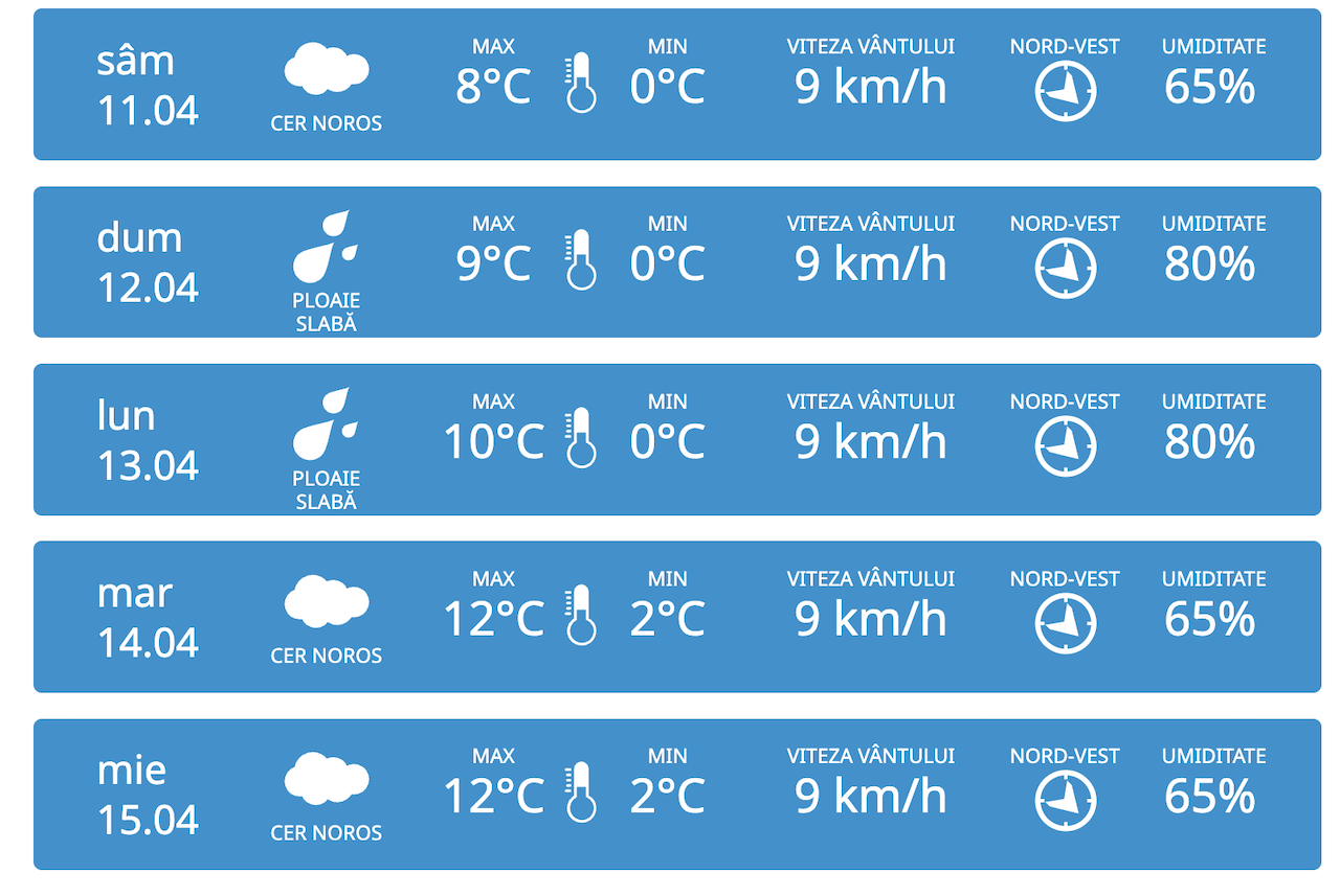 La Glodeni, Edineț, Dondușeni sau Ocnița, dar și în alte regiuni din nordul țării se anunță ploi slabe și maxime de 10 grade în ziua de Paște și minime de 0 grade. Un tablou similar ar putea să se înregistreze și pentru ziua de luni, 13 aprilie.