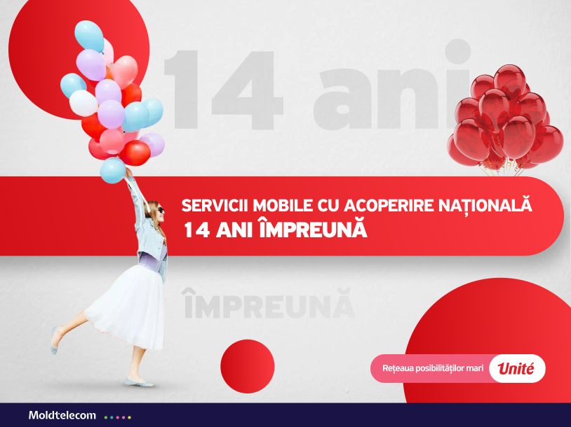 Serviciul de telefonie mobilă Unite, al companiei Moldtelecom, împlinește, la 1 martie, 14 ani de la lansare. O perioadă scurtă, dar în care a reușit să atragă aproape jumătate de milion de abonați. Este, de asemenea, singura companie din domeniu numărul de abonați al căreia este în continuă creștere.
