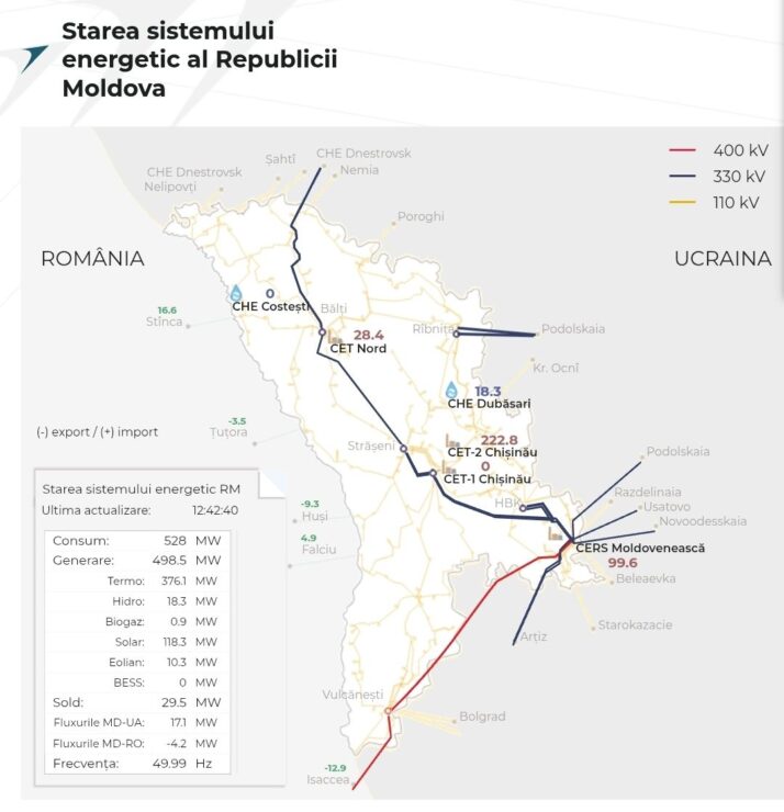 „La o zi după blackoutul parțial, Moldova și-a acoperit consumul de energie electrică prin generare din surse interne în proporție de 94%, la ora 12:42.