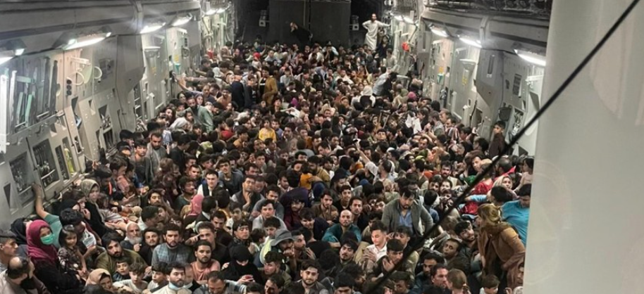 Aproape 650 de afgani au fost evacuați din Kabul într-un singur transport, cu un avion militar american C-17 Globemaster III. Poza s-a viralizat pe internet, încă una din imaginile emblematice ale crizei pe care o trăiesc afganii care vor să fugă din țară după ocupația talibană. Capacitatea normală de transport de personal a avionului este de peste patru ori mai mică.