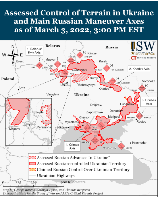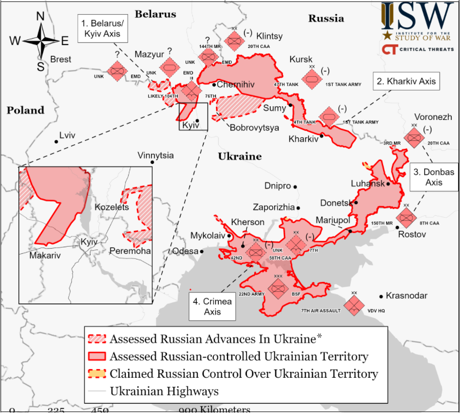 Harta războiului din Ucraina. Institutul american pentru Studii de Război: Armata rusă nu a reușit să încercuiască Kievul prin vest