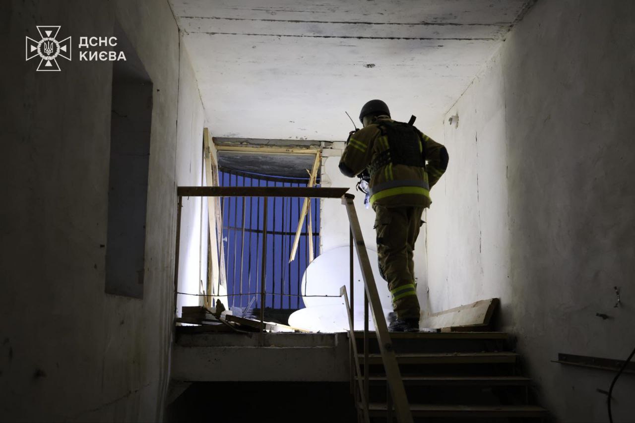 UPDATE 08:40 În Kiev, raionul Solomianskîi, fragmente ale unei drone rusești au lovit un bloc de locuințe cu 15 etaje. Potrivit autorităților, a fost lovit etajul tehnic.