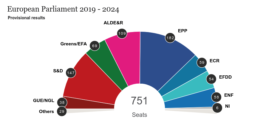 Potrivit rezultatelor preliminare, Partidul Popular European (PPE) câștigă alegerile europarlamentare și acumulează cele mai multe mandate în noul Parlament. Datele preliminare arată că celor de la PPE (centru-dreapta) le revin 182 de mandate, în timp ce Alianței Progresiste a Socialiștilor și Democraților (S&D, centru -stânga), le revin 147 de fotolii în noul Parlament.
