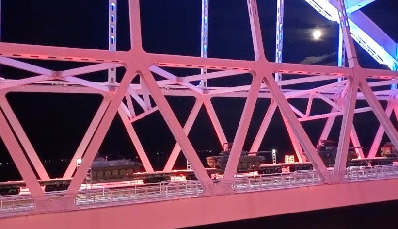 Ministerul rus al Apărării susține că echipamentele militare sunt încărcate în trenuri care părăsesc Crimeea pe un pod de cale ferată.