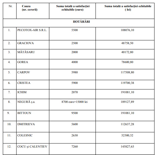 În legătură cu necesitatea executării a 39 hotărâri și 9 decizii, R. Moldova trebuie să achite, în total, 536.196,37 euro (7.116.304,14 lei).