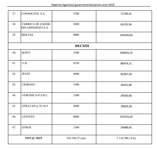 În anul 2019 nu au fost constatate întârzieri la plata sumelor cu titlu de satisfacție echitabilă. În aceeași ordine de idei, Ministerul Finanțelor a fost notificat de către Agentul guvernamental în legătură cu necesitatea executării a 39 hotărâri și 9 decizii (aici sunt indicate doar numărul) hotărârilor și al deciziilor devenite definitive în anul 2019, care implică plata anumitor sume reclamanților).