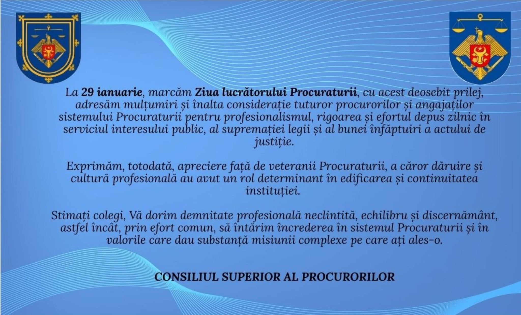 În context, echipa Poliției Naționale i-a felicitat pe procurorii „care, prin profesionalism, integritate și devotament, contribuie zilnic la apărarea legii, a drepturilor cetățenilor și a interesului public”.