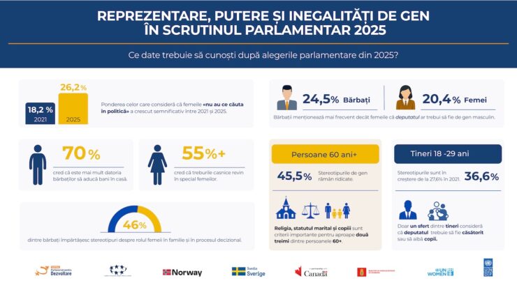 Conform unui comunicat de presă, acestea sunt constatările Raportului „Reprezentare, putere și inegalități de gen în Scrutinul Parlamentar 2025”, realizat CPD. Studiul investighează modul în care stereotipurile și atitudinile sociale condiționează șansele reale ale femeilor de a accede în funcții elective și de a fi acceptate de electorat ca lidere legitime.
