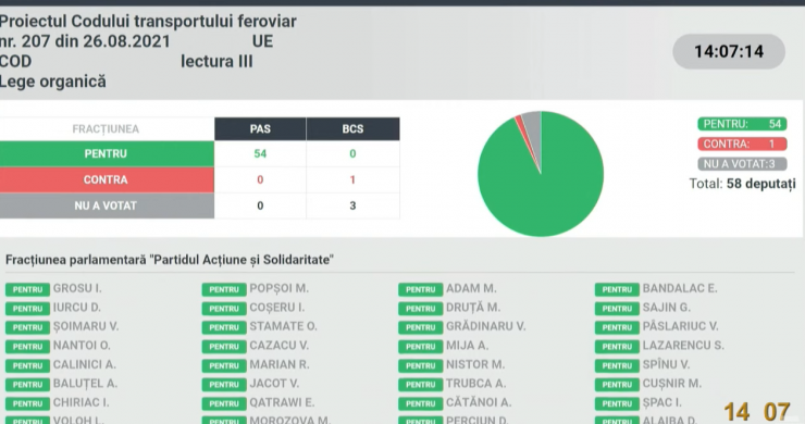 Proiectul Codului transportului feroviar care prevede eliminarea monopolului Î.S. „Calea Ferată din Moldova” pe piața serviciilor feroviare, votat de Parlament în lectură finală