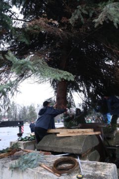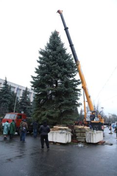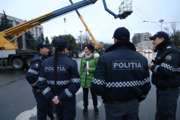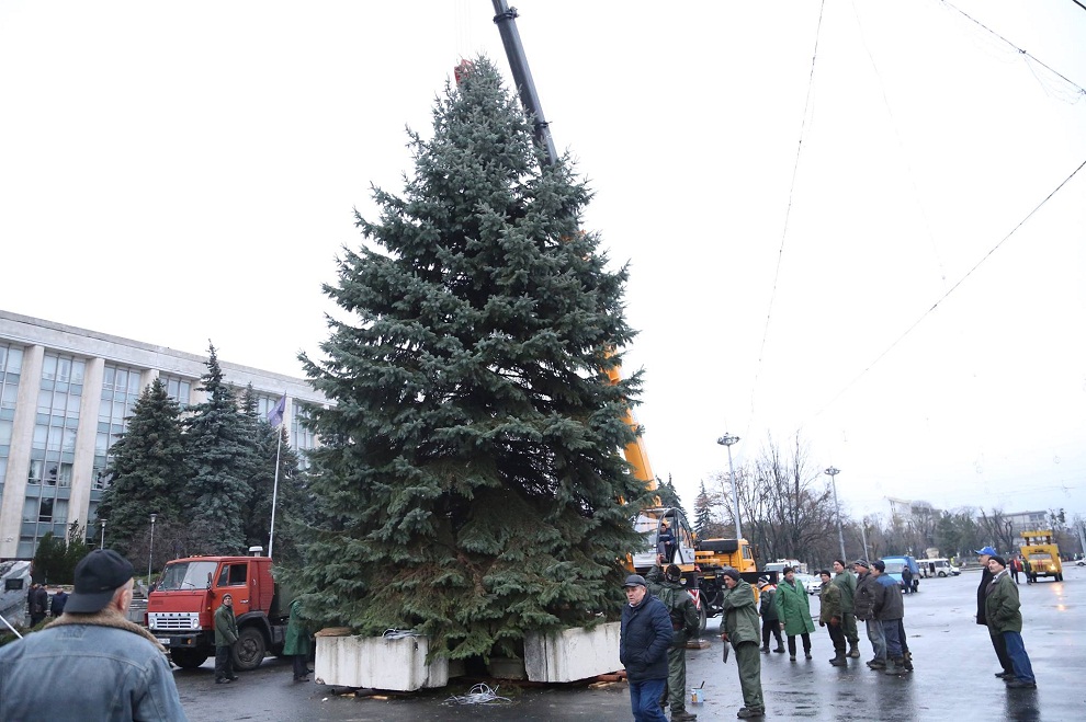 Supreavegheat de polițiști și șeful Inspectoratului Național de Patrulare, Livii Baziuc, bradul tăiat din curtea unei grădinițe din sectorul Botanica al capitalei, a fost transportat în Piața Marii Adunări Naționale (PMAN). A monitorizat procesul de instalare a bradului de primara interimară a capitalei, Silvia Radu, cea care a acuzat mai devreme liberalii de faptul că ar fi dat ordine ca pomul adus din Ucraina să fie ridicat în PMAN chiar dacă a ajuns la Chișinău aproape fără crengi.
