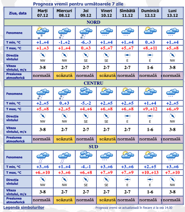 Prognoza vremii pentru următoarele 7 zile.