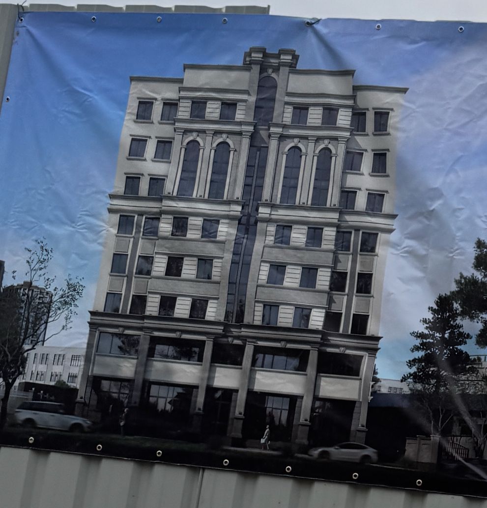 După plecarea echipei de filmare, muncitorii au instalat încă un panou, de această dată ilustrând viitorul bloc de locuințe.