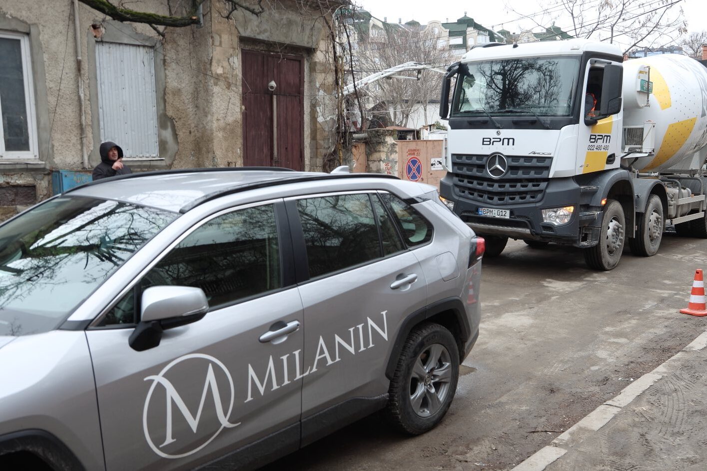 În zonă se află mai multe automobile inscripționate „Milanin”. Cu toate acestea, cele câteva persoane aflate la fața locului neagă orice legătură cu șantierul. De asemenea, pe 30 martie, când am fost pentru prima dată la șantier, lipsea panoul informativ care ar trebui să indice cine execută lucrările, ce anume se construiește, dar și date despre autorizație și termeni.