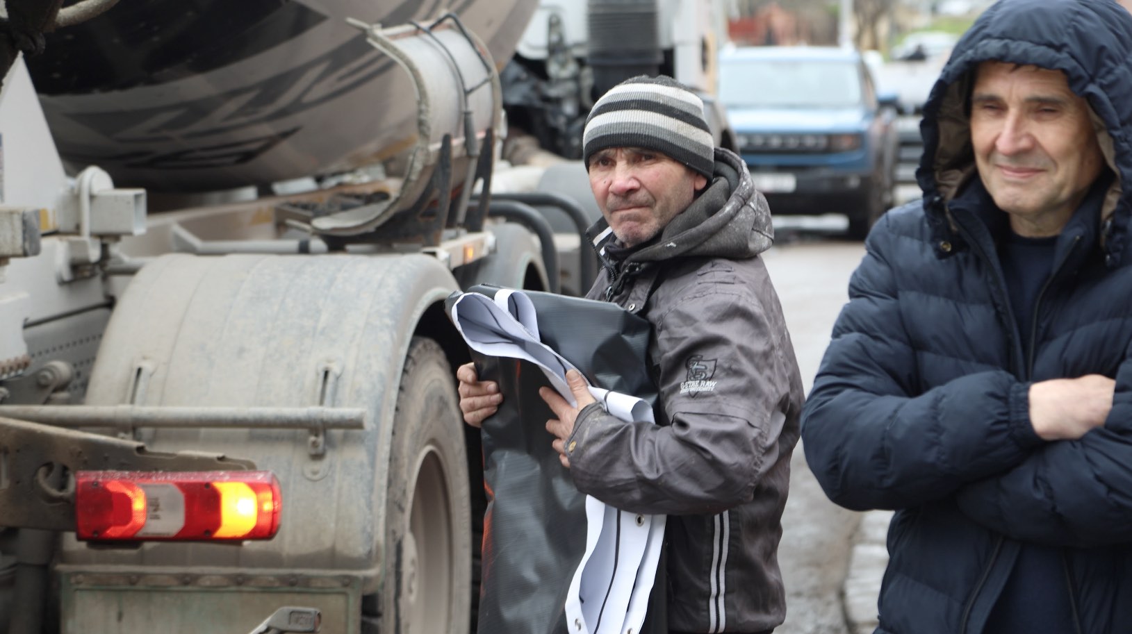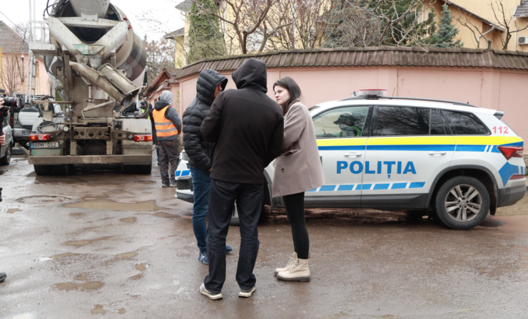 Dirigintele de șantier: Ce contează cine sunt eu? Întrebarea este de ce voi ați blocat drumul. Mașina (cu beton, n.r.) este a mea, eu am chemat-o.