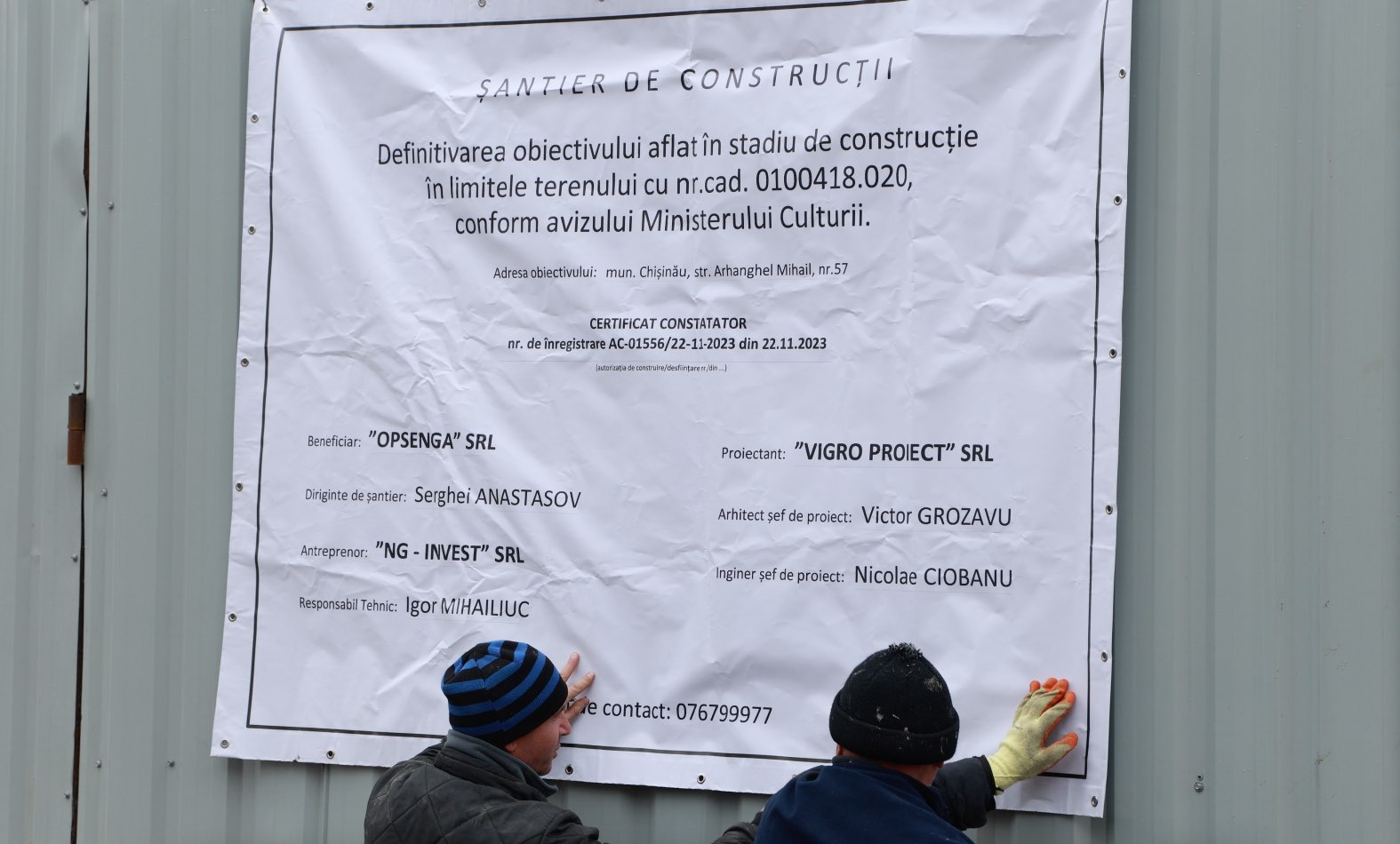Totodată, panoul confirmă că beneficiarul este compania „Ospenga” SRL, care a ajuns să gestioneze terenul din anii 2000, iar „antreprenor” figurează firma „ND-INVEST” SRL, fondată de Ion Gurschi. Proiectant și arhitect-șef este Victor Grozavu și firma sa, „Vigro Proiect”. Victor Grozavu este fiul ex-viceprimarului de Chişinău, Nistor Grozavu, vizat anterior în mai multe scandaluri publice, dar și a funcționarei din cadrul primăriei, Maria Grozavu, șefă de secție în cadrul Direcției generale arhitectură, urbanism și relații funciare.